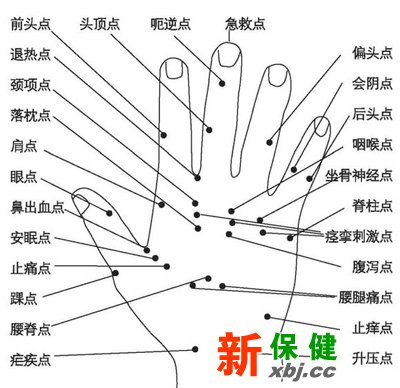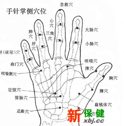 方法:中指中沖、小指少沖、手掌區、中指心穴、手腕大陵穴、虎口下虎邊穴、手背手腕陽溪穴,虎邊穴是治療羊癲瘋的特效穴。
