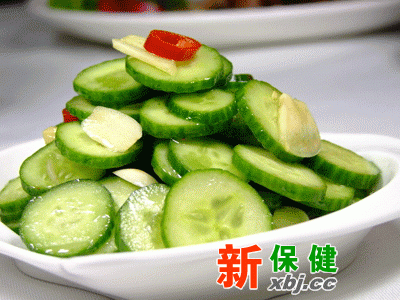 黃瓜含有維生素C、維生素B族及許多微量礦物質,它所含的營養成分豐富,生吃口感清脆爽口。從營養學角度出發,黃瓜皮所含營養素豐富,應當保留生吃。但為了預防農藥殘留對人體的傷害,黃瓜應先在鹽水中泡15-20分鐘再洗凈生食。用鹽水泡黃瓜時切勿掐頭去根,要保持黃瓜的完整,以免營養素在泡的過程中從切面流失。另外,涼拌菜應現做現吃,不要做好后長時間放置,這樣也會促使維生素損失。