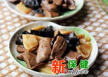 原料:豬腰子2個、冬筍片、水發木耳適量、醬油、精鹽、味精、料酒、濕淀粉等調味料。