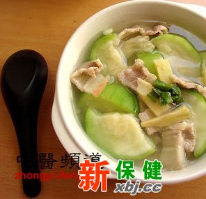做法:1.瘦肉洗凈切成薄片備用,絲瓜去皮切成片備用;2.炒鍋洗凈放入少許的清湯煮沸后放入瘦肉片,等煮沸后撇去上面的浮沫,之后加入絲瓜、鹽、味精等稍煮片刻即可飲用。
