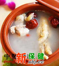 用料:黨參30克、杞子15克、紅棗15克、雞肉150克。隔水燉。