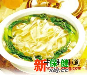 秋季早餐來碗熱湯面是不錯的選擇,熱騰騰的面條暖胃又暖身。面粉含有多種氨基酸和維生素,且含熱量低。在煮的過程中,面條會吸收大量水,100克面條煮熟后會變成400克。