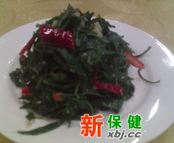 將去皮仙人掌切絲,芹菜去葉洗凈切段,一同入沸水焯過(guò),撈出瀝干,拌上鹽、味精,淋上橄欖油即可。