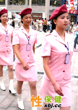 一隊靚麗的青春美少女近日出現(xiàn)在成都市繁華的商業(yè)步行街——紅星路上。她們以微笑勸止那些隨地扔垃圾的行人,友善地為外國游客講解老成都的民俗文化。她們的那身打扮———棕紅色的貝雷帽、粉紅的套裝和白色的皮靴,為熙熙攘攘的街市帶來了許多夏日的清爽。她們就是成都街頭的文明使者——女子禮儀勸導隊員。