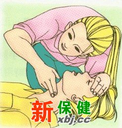 昏迷的病人常因舌后移而堵塞氣道,所以心肺復蘇的首要步驟是暢通氣道。急救者以一手置于患者額部使頭部后仰,并以另一手抬起后頸部或托起下頦,保持呼吸道通暢。對懷疑有頸部損傷者只能托舉下頦而不能使頭部后仰;若疑有氣道異物,應從患者背部雙手環抱于患者上腹部,用力、突擊性擠壓。