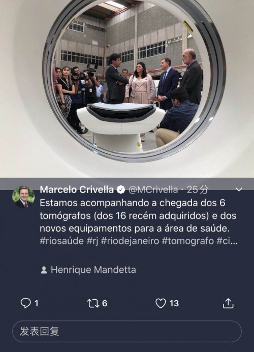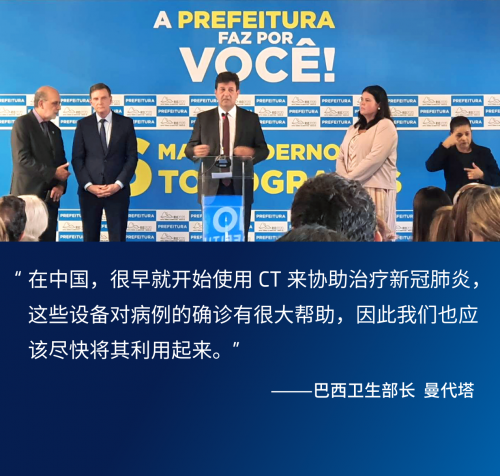 當前,和很多疫情爆發初期的國家一樣,巴西也面臨著嚴重的核酸檢測試劑不足問題。正如巴西衛生部長曼代塔在CT設備接收儀式上所說,里約市應參考中國的抗疫經驗,盡快將這些CT使用起來,借助醫學影像增強診斷能力。