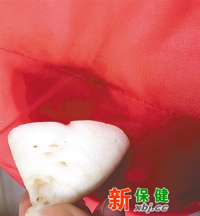 實驗過程:首先,往羽絨服的右邊衣袖上滴上豬油,讓油被羽絨服吸收;接著,將白蘿卜切斷,反復將蘿卜汁涂抹在羽絨服的油漬上。大約涂抹5分鐘后,將羽絨服放入清水中洗凈,然后用電吹風吹干。